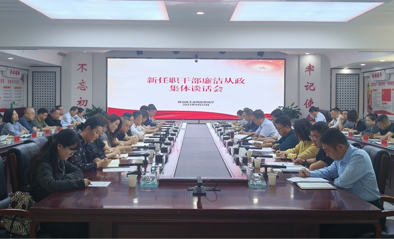 為深入學習貫徹習近平總書記關于加強黨的作風建設的重要論述精神,鞏固拓展深入貫徹中央八項規定精神學習教育成果,進一步加強年輕干部、新提拔干部、重點崗位干部廉政教育,推動以廉潔文化建設潤心鑄魂,自治區工業和信息化廳黨組會同派駐紀檢監察組共同召開新任職干部廉潔從政集體談話會。廳機關及事業單位各黨支部書記、處長,新提拔晉升、交流輪崗及新任職干部,以及特邀的黨員干部家屬代表共計60余人參加會議。